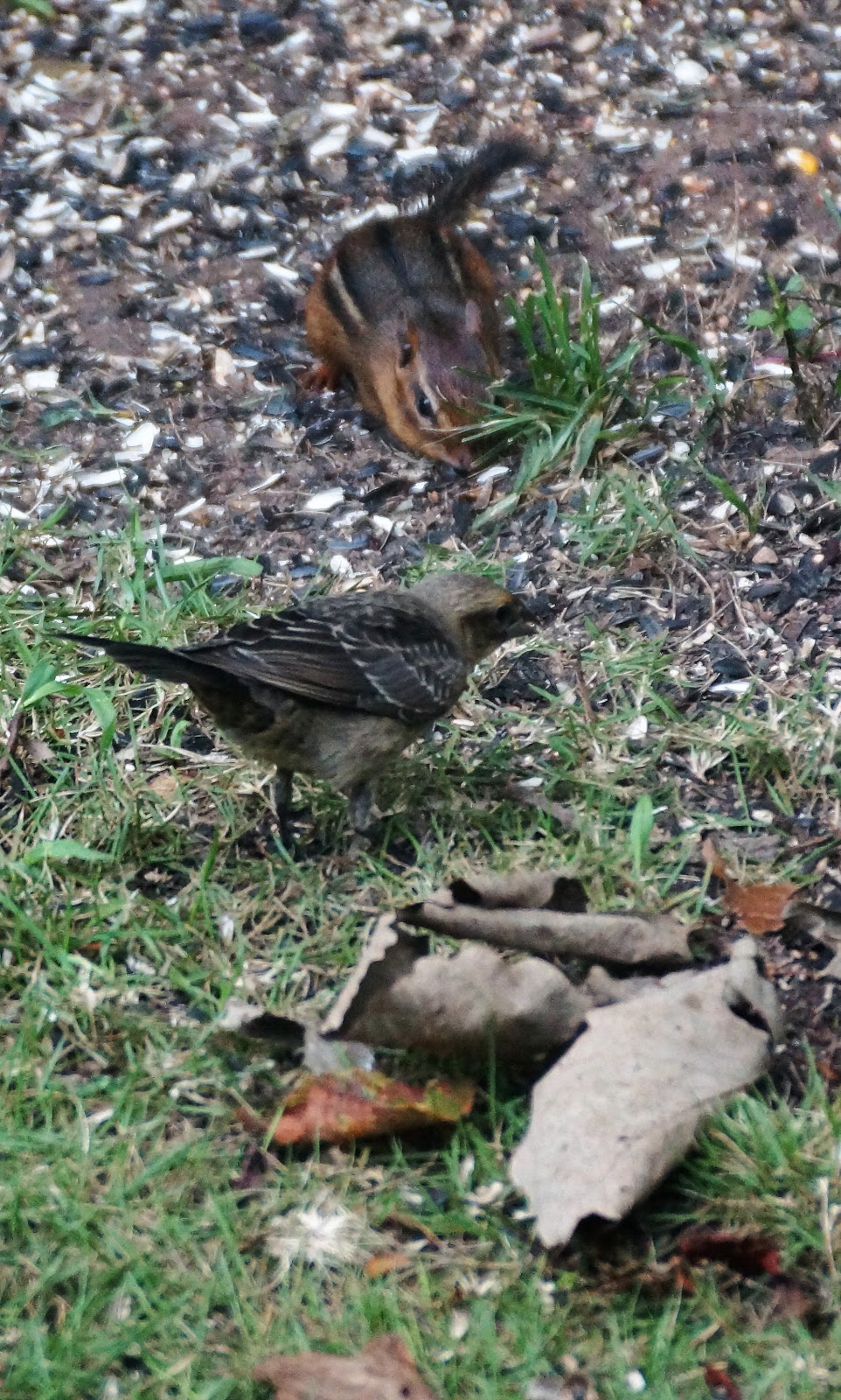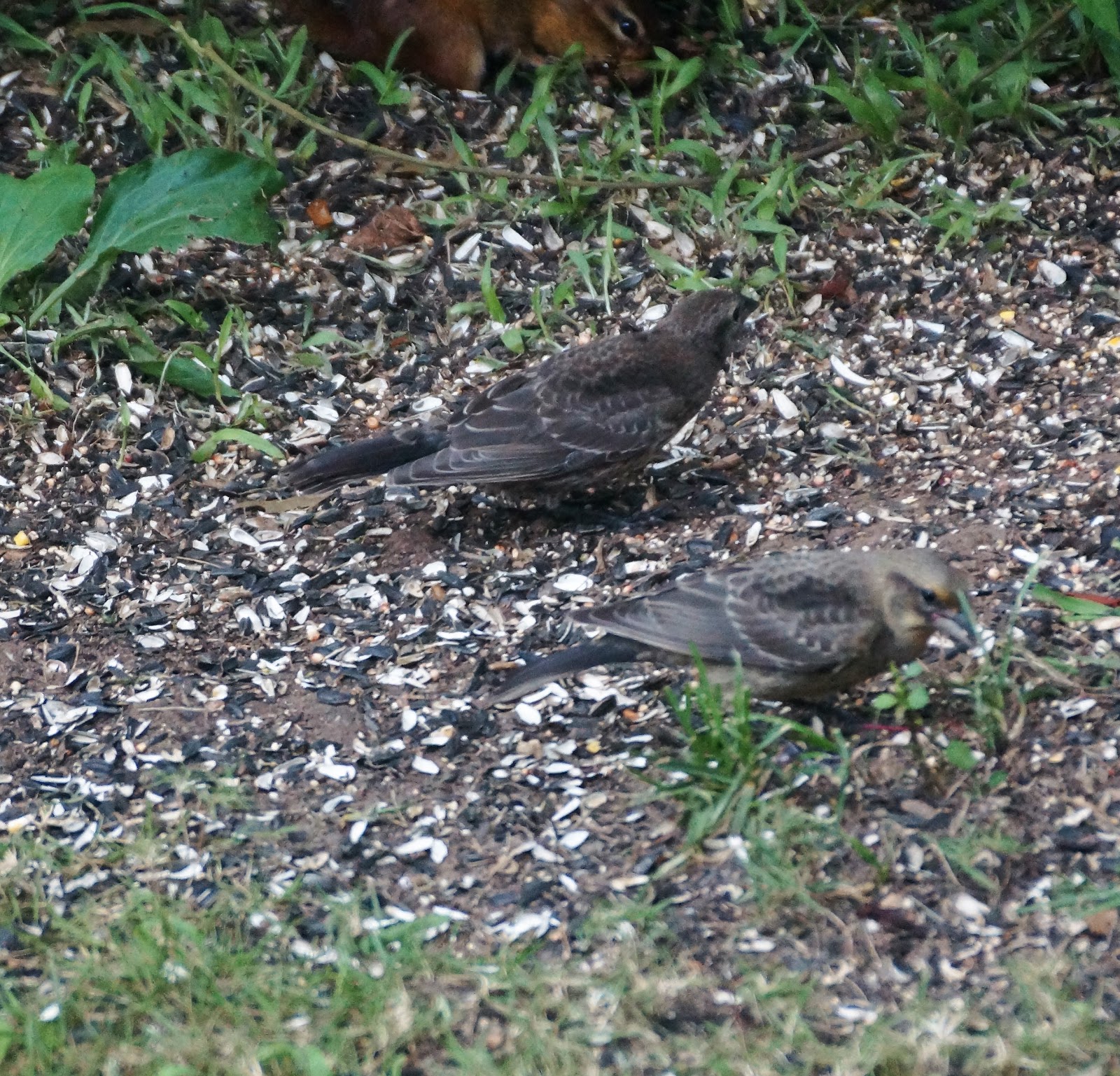 Another (or maybe the same) cowbird, with a female cowbird ...