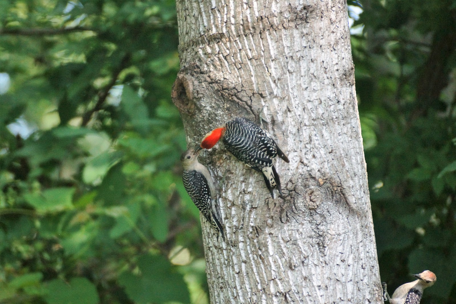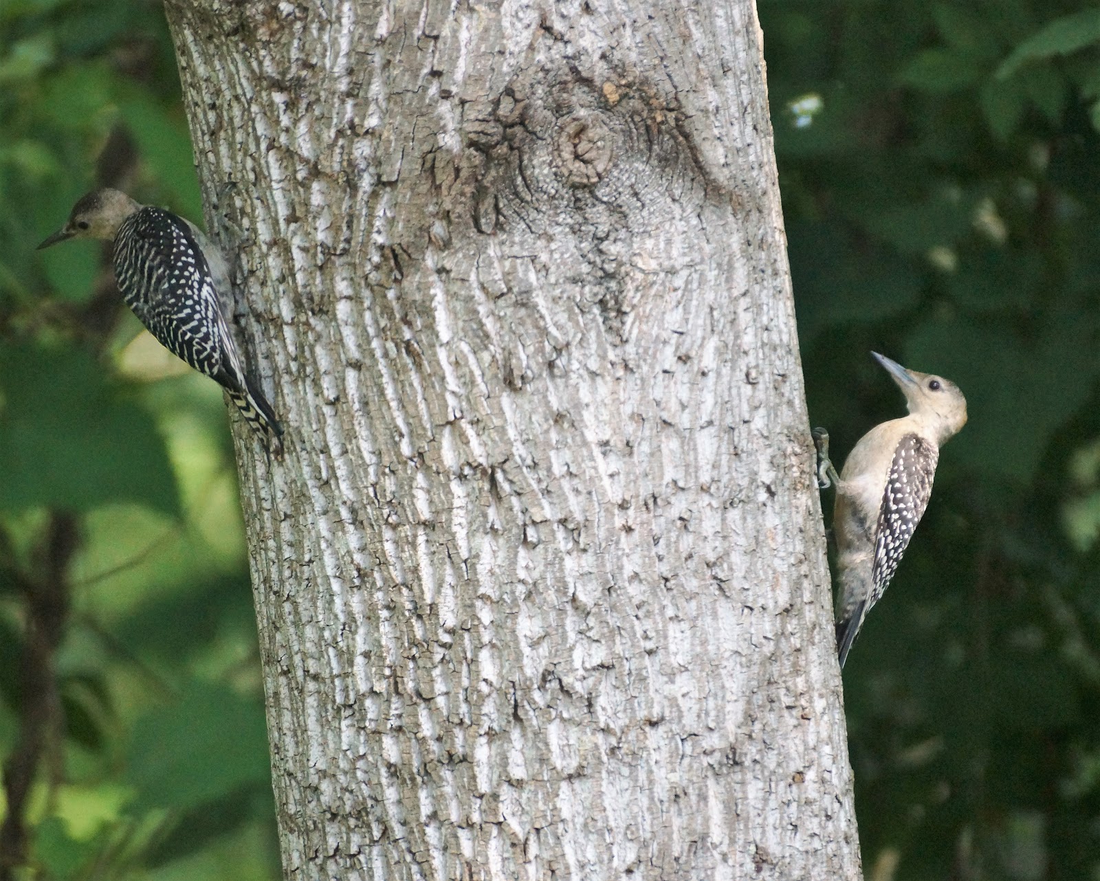 A couple of Red-Bellied woodpeckers wait for a parent to feed them