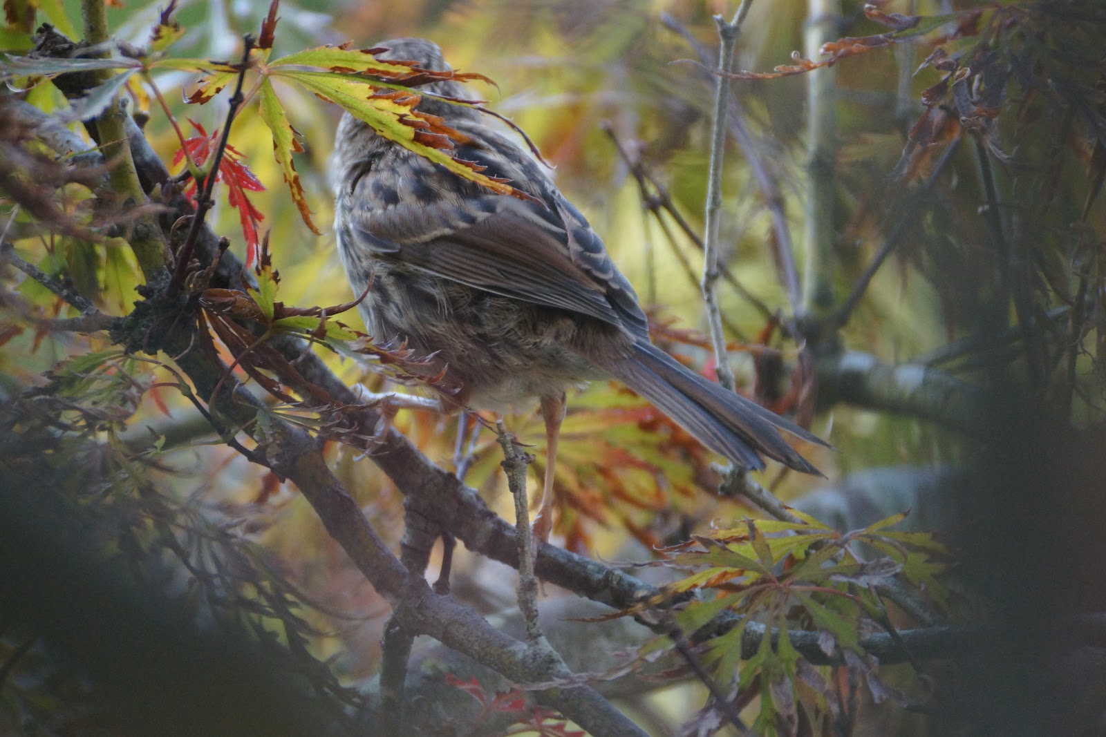 This is a juvenile Eastern towhee, looking like the giant sparrow they are.